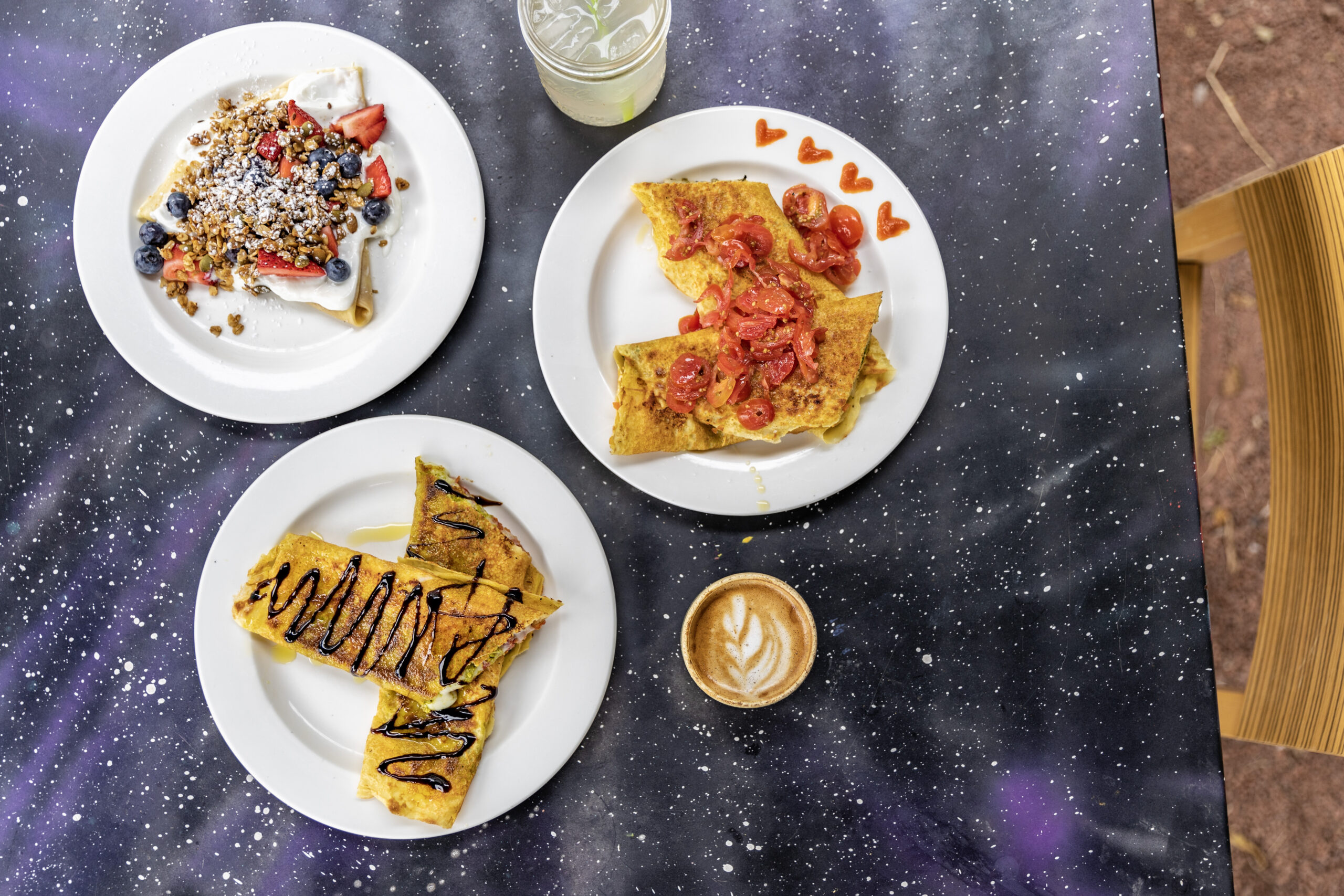 Feel inspired bright and early with breakfast at The Dot Cafe, a brunch and coffee spot serving up delicious eats, strong coffee, and retro vibes. Pick between the oatmeal, fancy toast, and other breakfasts and pair it with a hot coffee or sparkling orange juice!